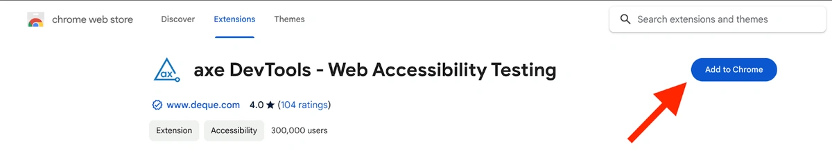 The easiest way to start using axe DevTools is to install the free browser extension. Just click the browser extension link on the axe website, and you’ll be redirected to your browser’s extensions store. Please follow the instructions in the store to install the extension.