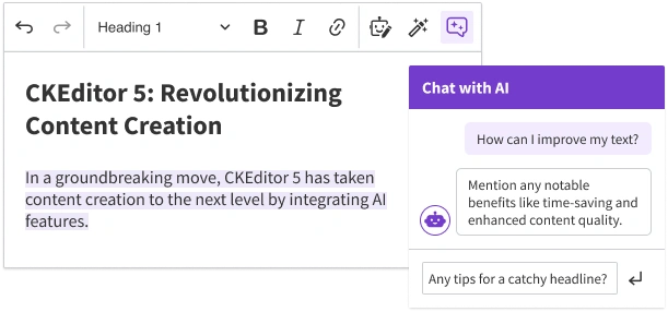 AI Assistant is just the start of us adding enhanced AI capabilities to CKEditor 5. Here are some potential future AI Assistant features: