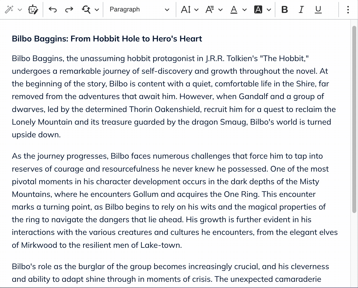 Get the AI Assistant to help make your writing better. You can ask the AI Assistant to make a piece of text longer or shorter, simplify the language used, or improve the quality of the writing.
