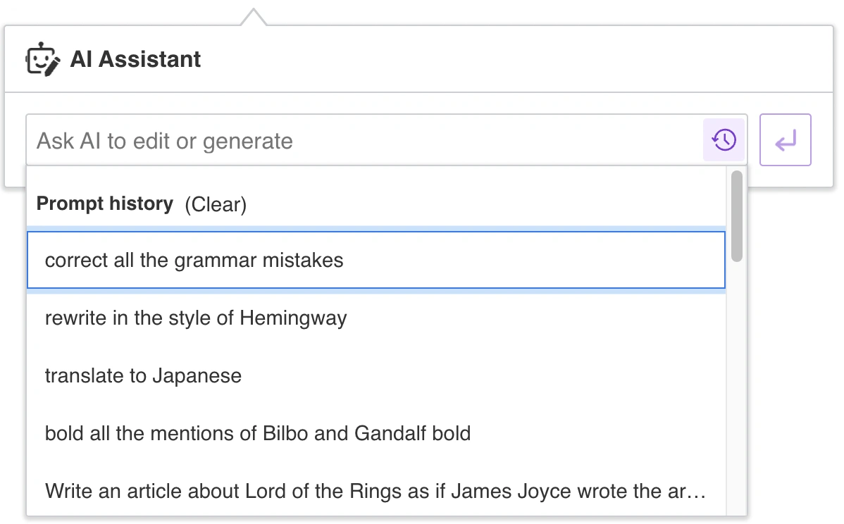 You can ask the AI Assistant to rewrite your text using a different tone of voice, including professional, casual, direct, confident, and friendly.