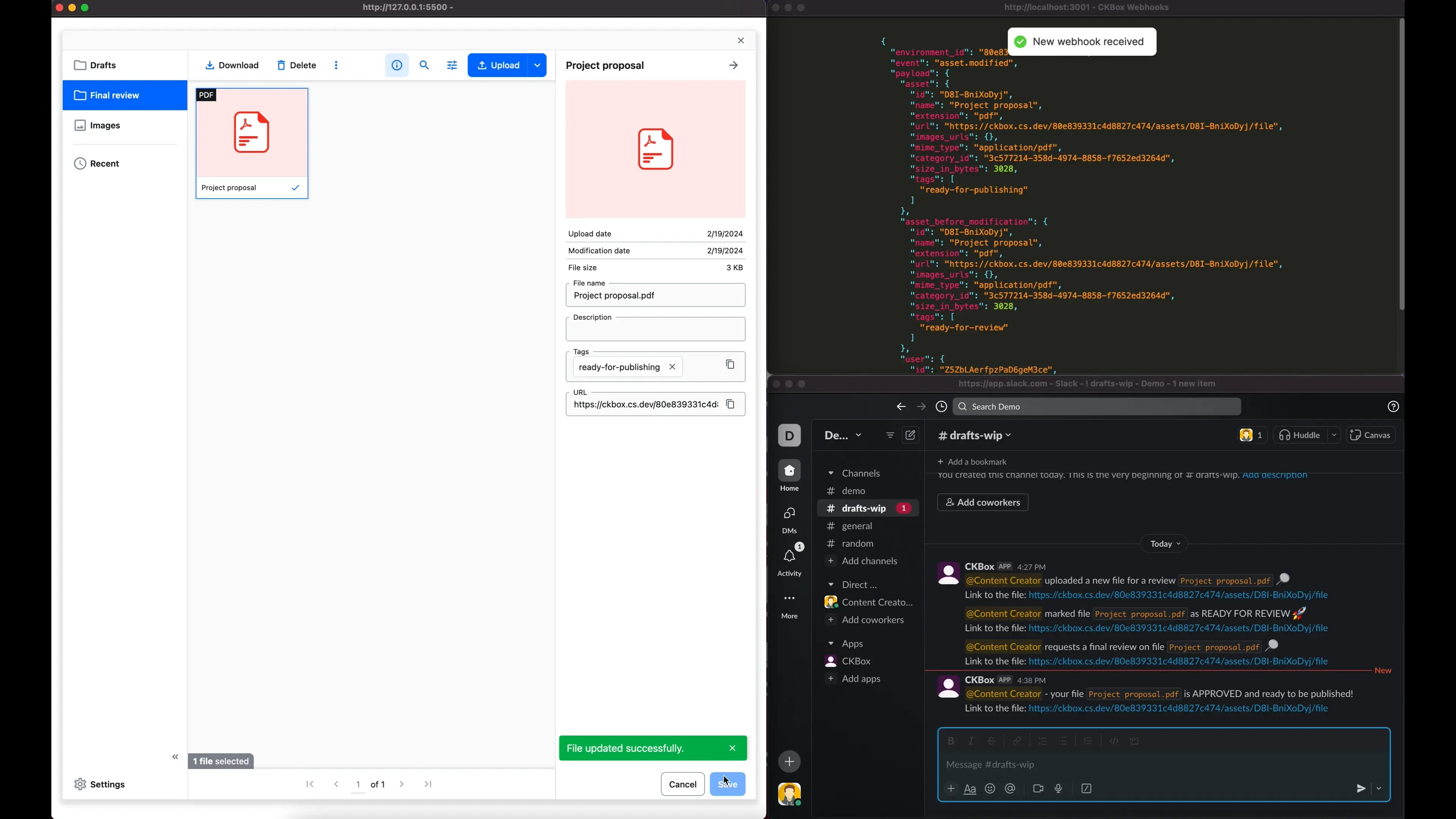 The newly released CKBox version 2.4.0 contains webhook integrations so developers worldwide can connect CKBox with other independent online systems to communicate with one another and share data. This highly requested feature allows CKBox customers to wire CKBox into their content ingestion systems, document collaboration, and content supply chains.