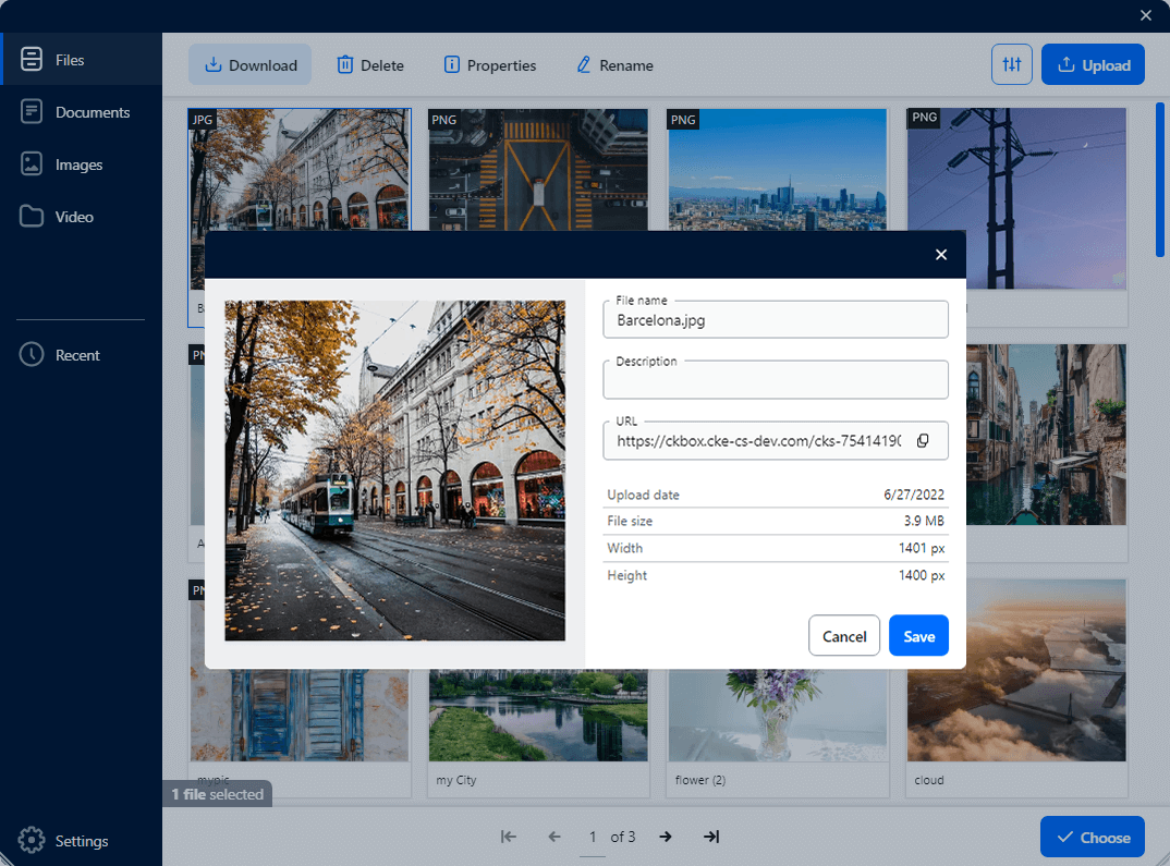 With CKBox, users can upload files, group them into categories, and modify properties like names, dimensions, or formats. These systems are essential for maintaining order and accessibility, especially in environments with a high volume of digital assets.