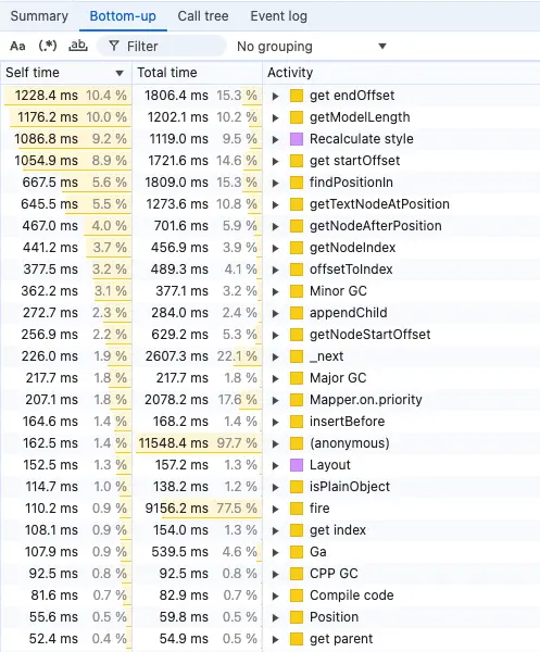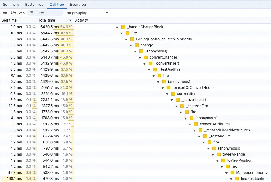 The whole process requires a mix of intuition and a solid understanding of the editor engine. Thankfully, a lot of the original CKEditor 5 team is still working on the project. This gave us a big advantage of remembering where we initially neglected performance problems in the past.
