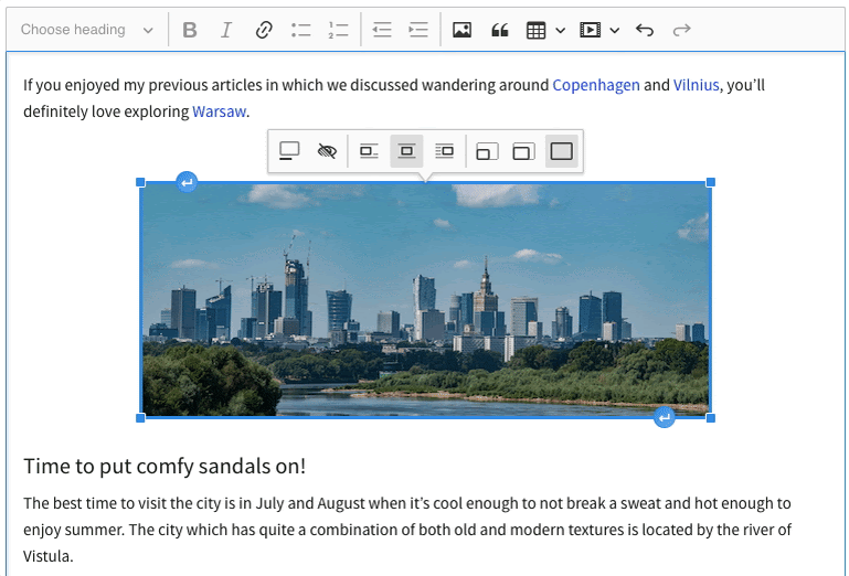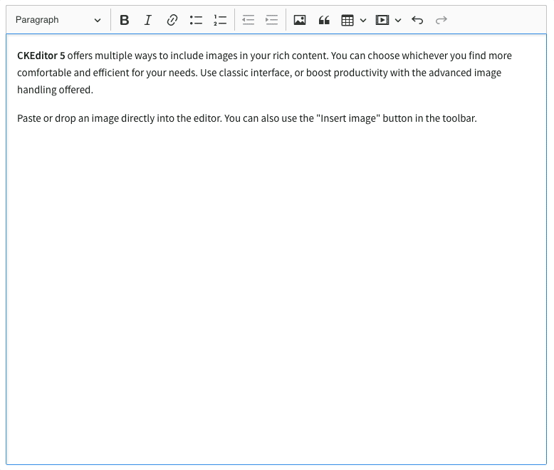 Whatever kind of content you’re creating, the image subsystem of CKEditor 5 is a versatile, highly developed set of features offering terrific flexibility and usability in a wide variety of contexts.