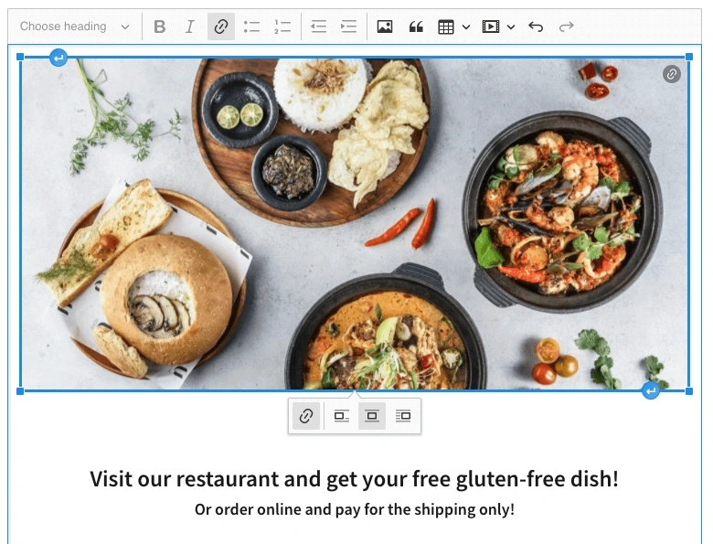 However, if you want to center, right-align, or left-align an image, it automatically becomes an inline image. Simply click the buttons on the toolbar to change the image alignment.