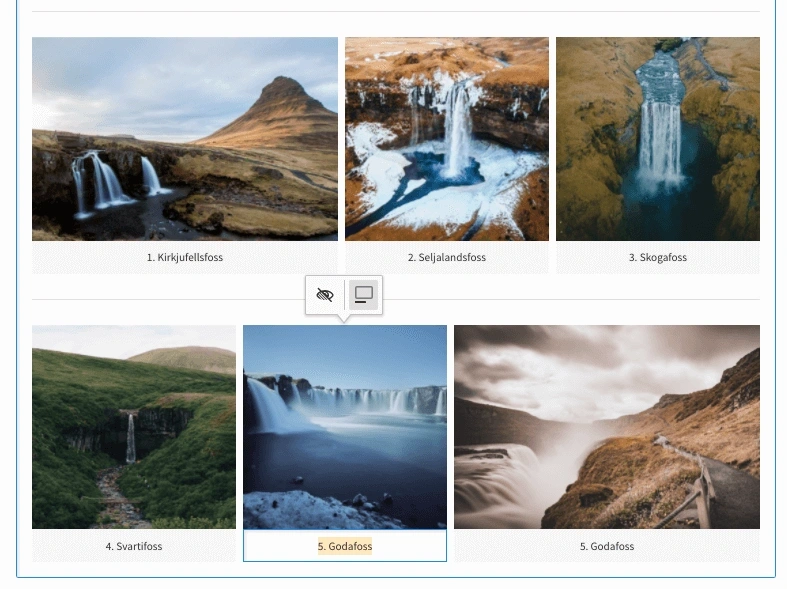 Use the contextual image management toolbar to add, edit, and remove the link attached to an image. To see whether an image has an attached link, look for the link icon in the top right corner of the image.