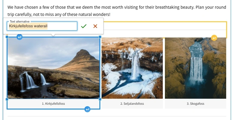 Accessibility is a key priority for CKEditor, and one of the best ways to make the web more accessible is using proper alternative text on all your images. Also known as alt text, it’s a written description of the image’s content that’s read aloud by screen-reading software, so that those with visual impairments can understand the image and its role on the page.