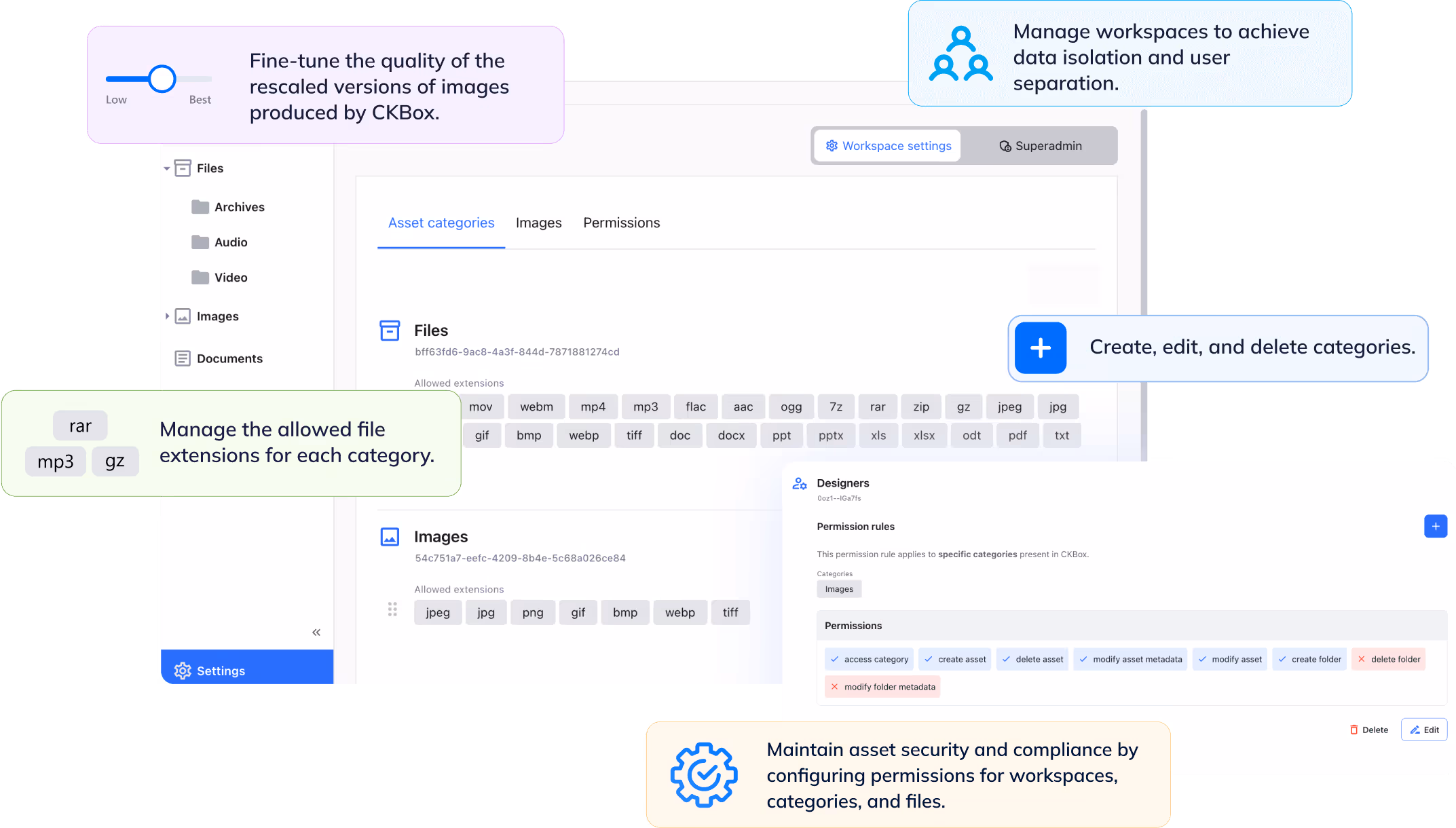 - Choose your storage type - S3, Azure Blob Storage, MySQL, Postgres, local filesystem.