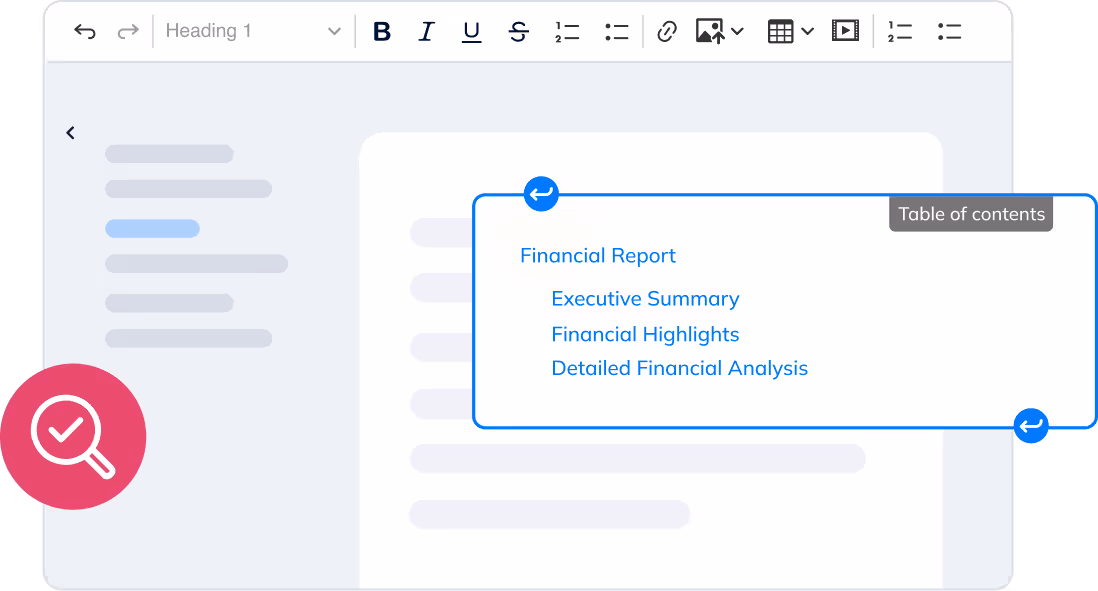 Insert interactive elements like a clickable Table of Contents or Footnotes for enhanced content organization and navigation.