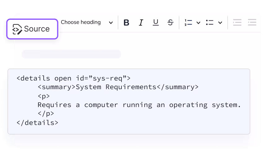 CKEditor can be set to accept any HTML element, attribute, style, or class. Additionally, the Source button allows users to edit raw HTML with modern coding practices.