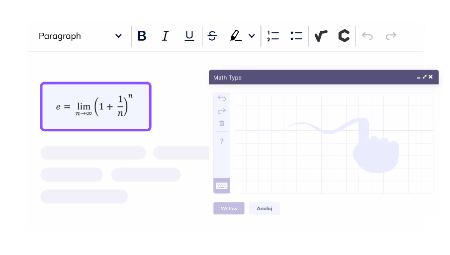 Add math equations and chemical formulas to your digital content. Type or handwrite and let it change automatically. Copy or convert to LaTeX.