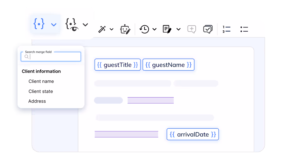 Insert dynamic placeholders into your content for automated, personalized document generation. Perfect for creating reusable templates for newsletters, legal documents, and more.