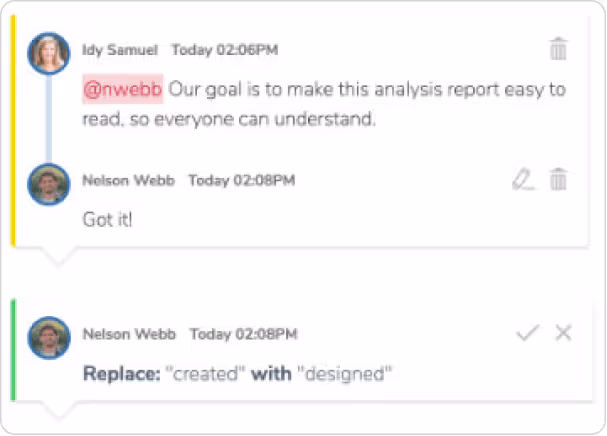 Increase productivity and shorten your time to market, thanks to collaborative features such as Comments and Track Changes.