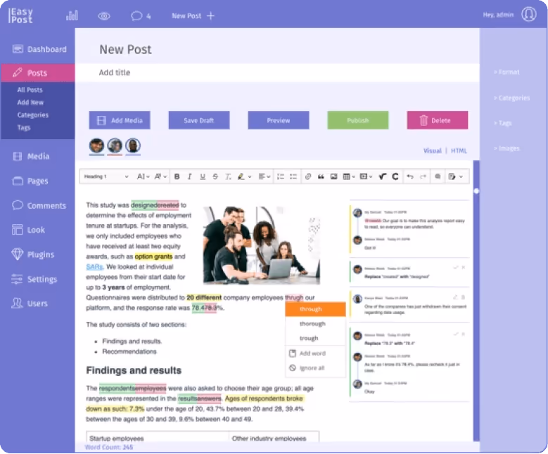 Simplify the content creation process and make it more efficient by using just one application. No third party tools necessary.