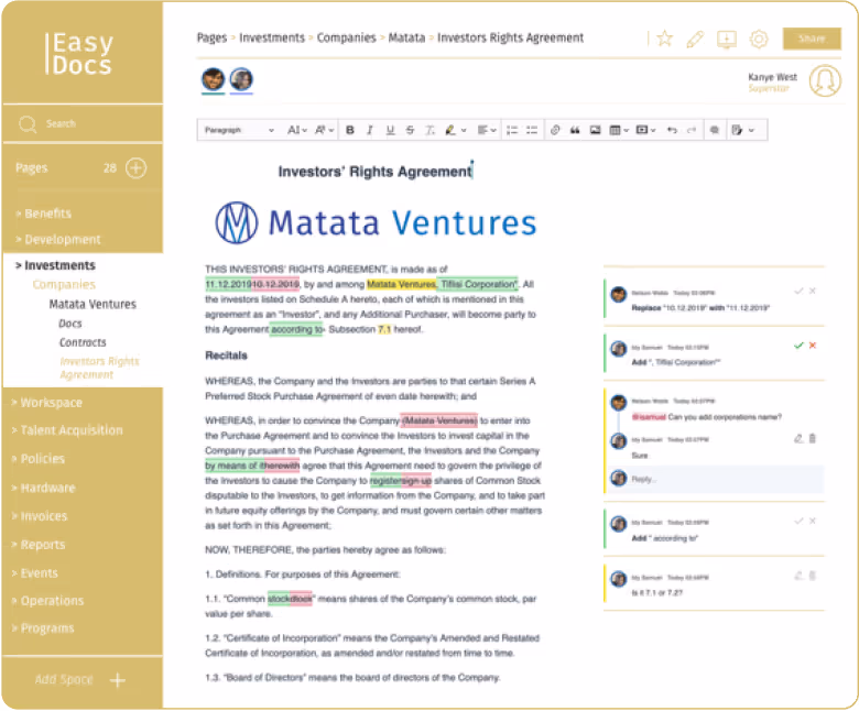 The Comments and Track Changes features are a must. We can’t have Agreemint without them.