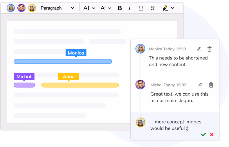 The architecture of CKEditor 5 was purpose-built for collaboration. Even real-time collaboration can be set up within hours.